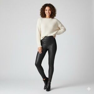 Elevate your everyday style with these iconic SPANX Faux Leather Leggings in a versatile black. Designed with the signature Spanx Power Waistband, these leggings offer exceptional tummy control and a sleek, contoured silhouette without a center-seam (no camel toe!). The pebbled finish provides an edgy, moto-inspired look that transitions perfectly from a casual day with sneakers to a night out with heels.