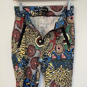 Boho Mixed Animal Print Flare Pants Med Festival Geometric Maximalist