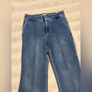 Stylish dark blue flare jeans by Alice + Olivia. Perfect blend of comfort and elegance.