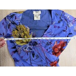 FUZZI by Jean Paul Gaultier Blue Floral Mesh Wrap Top Longsleeve XL. Excellent condition, no flaws. Super stretchy mesh material, so measurements won't be completely accurate. Absolutely gorgeous blue color with vibrant florals and feathers