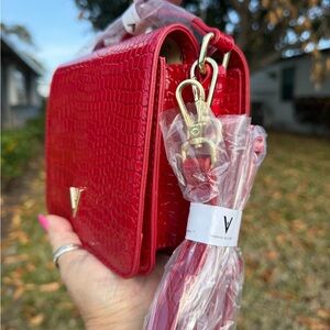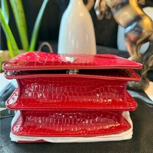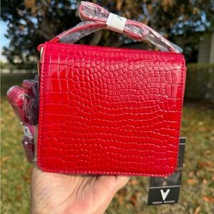 Brand New…Elevate your style with this stunning red crocodile-embossed bag from Vanessa Williams. Perfect for any occasion, this bag adds a touch of elegance to your outfit. This striking red mini bag features a luxurious croc-embossed texture, making it a standout accessory. Its compact design is perfect for carrying essentials, while the gold accent adds a touch of sophistication. Long crossbody strap,