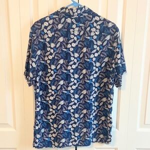 This Banana Republic shirt features a relaxed fit with a classic button-down design, perfect for casual outings. The blue and white color scheme adds a touch of elegance, while the lightweight fabric ensures comfort in warm weather. Ideal for a laid-back yet stylish look.