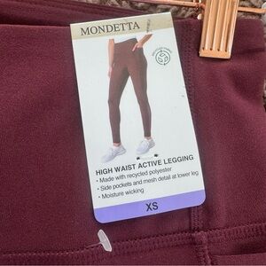 MONDETTA Burgundy High Waist Active Leggings Pockets High Rise Size XS NEW