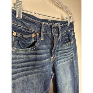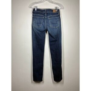 American Eagle Straight Super Stretch Jeans Womens 2 LONG Dark Wash Low Rise
