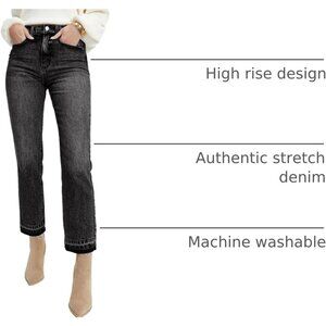 Features: These high-rise jeans sit comfortably at your natural waist, offering a flattering silhouette. They have a classic five-pocket design, an easy zipper fly, and a relaxed ankle length. Made with authentic stretch denim, they move with you and keep you comfortable all day long.