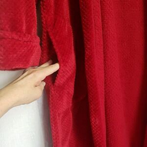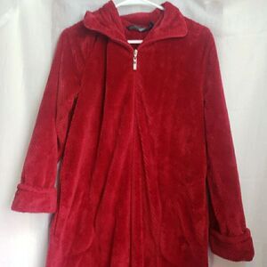 Noire Jasimine Rose Long Robe Long Sleeve Zip Front Pockets Polyester Red Size M