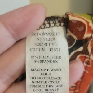 This vibrant tank top features a stunning paisley design in red, green, and black. Perfect for a bold fashion statement. 20" pit to pit and 28" length E28