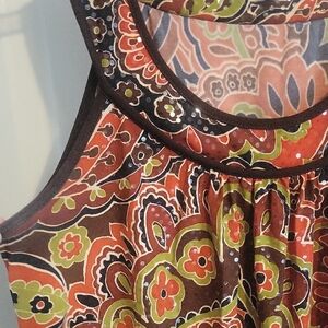 Moa moa SzXL floral brown trim scoop neck sleeveless Women's Top sparkle