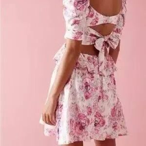 For Love & Lemons White and Pink Floral Lucia Mini Dress Size L