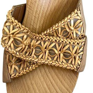 Stuart Weitzman Womens Wooden Heel Sandals Weave Crossstrap Open Toe Tan Size 8M