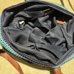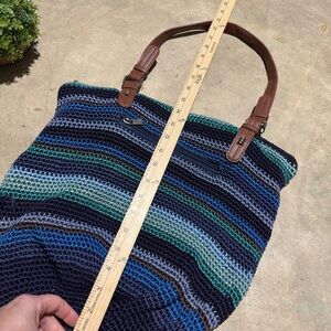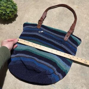 The Sak Woven Shoulder Bucket Bag Purse Blue Green Struped Beach Summer Boho