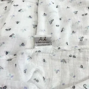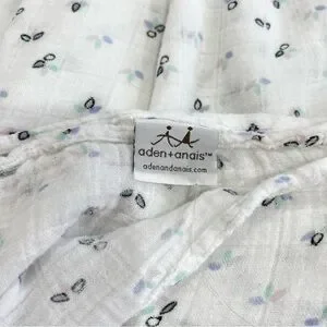 aden + anais White Floral Blanket Pink Accents Muslin Swaddle 44" X 45" Comfy