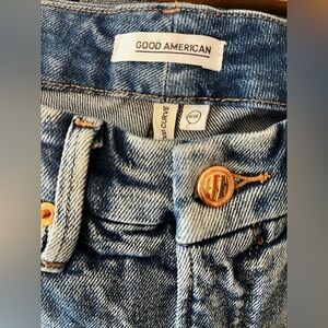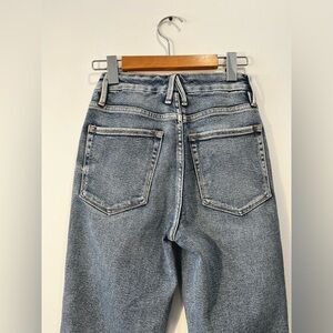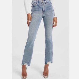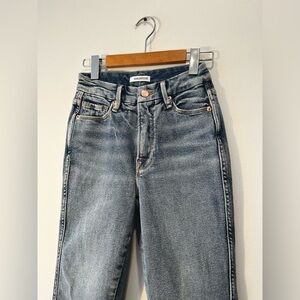 Good American Good Curve High Waist Frayed Hem Cutoff Straight Leg Jeans size 25