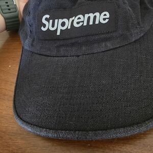 Elevate your style with the Supreme Black Linen Fitted Camp Cap. This sleek black cap offers a comfortable fit and a timeless look. Perfect for any occasion.