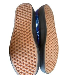 Vans sneakers with electric blue thunder pattern. Black laces and soles.