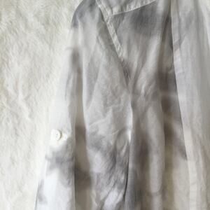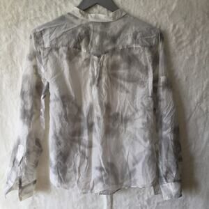 BCBGMaxAzria White and Gray Floral Half Button Down Shirt