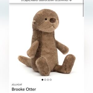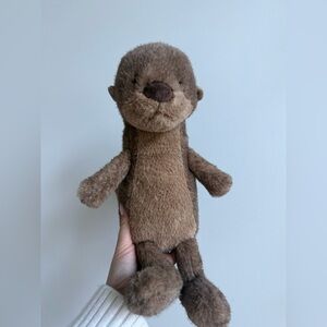 Adorable brown otter plush toy by Jellycat. Soft and cuddly.