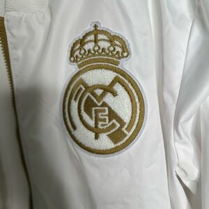 Real Madrid Club Adidas Men's White and Gold Bomber Jacket