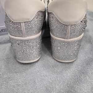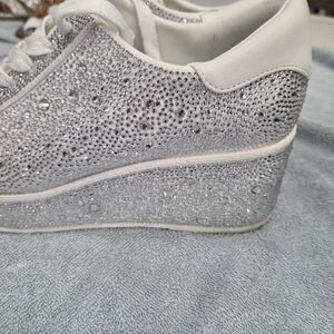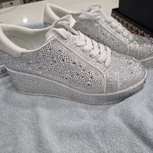Shine bright with these stunning silver glitter sneakers. Perfect for adding a touch of sparkle to any outfit.