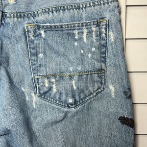 Old Navy Vintage Bootcut Embroidered Birds Distressed Button Fly Jeans Size 34