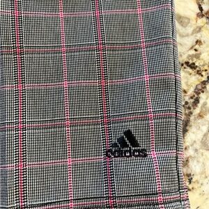 Adidas Gray Checkered Golf Shorts with Pink Lines