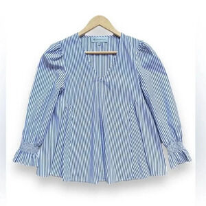 NWOT Tuckernuck BLUE & white Striped Easton V neck Blouse top sz small