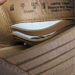 Franco Sarto nude strappy sandals, leather upper, 4.5" wedge heel, 9