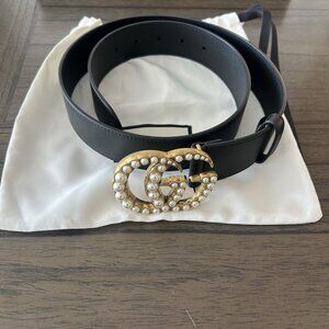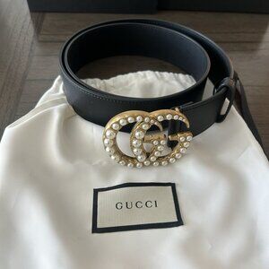This Gucci Women's Leather Belt in size 95cm is a stylish accessory that exudes luxury and fashion. The black leather belt features a solid pattern with a brass buckle accent, adding a touch of elegance to any outfit. Perfect for a waist size of 34-35 inches, this belt is designed for women who appreciate high-quality craftsmanship and timeless style. Made by the renowned brand Gucci, this fashion belt is a versatile piece that can elevate any wardrobe with its classic and sophisticated design.