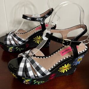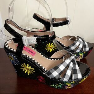 #BetseyJohnson #GinghamSandal #FloralWedge #PlatformSandals #SummerStyle #PinUp #Rockabilly #EmbroideredShoes #Y2KFashion #CottageCoreStyle #FestivalFashion #StatementHeels #DesignerSandals #PoshmarkSeller #ShopMyCloset