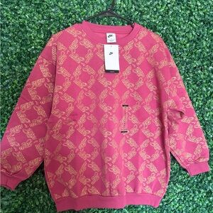 Stylish pink sweatshirt with gold Nike logo pattern. Perfect for kids.