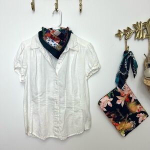 100% linen White short sleeve blouse with tailored chic look M