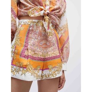 MAJE Linen Shorts with Scarf Print | 38 (FR) / M (US)