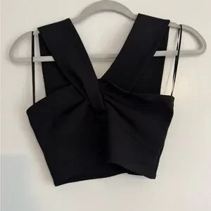 Chic black crop top with a stylish twist design. Perfect for a night out.