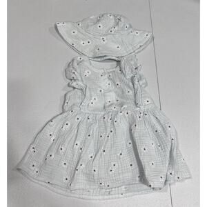 This product is a set of girls clothes in size 18 months, specifically dresses in a floral print with a blue color scheme. The set also includes a matching sun hat. The clothes are made of a cotton blend material and are suitable for everyday wear. The theme of the outfit is perfect for summertime, beach trips, casual outings, and features various brands such as Oshkosh and Rachel Zoe. Perfect for all seasons, this outfit is a stylish choice for any baby girl's wardrobe.