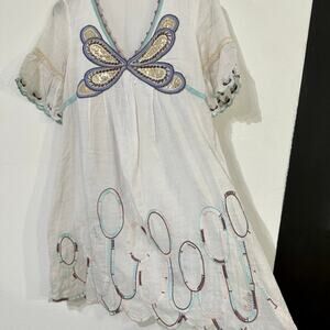 Custo Barcelona white butterfly beaded and embroidered boho dress. Beautiful beading and embroidery! Fully lined. Rare vintage find!!!