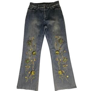 Vintage Willi Smith Floral Embroidered Jeans Size 8 Bootcut