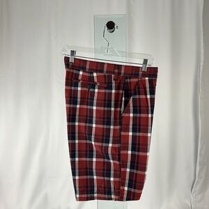 Sonoma Men’s Red Navy White Plaid Flat Front Shorts Size 36