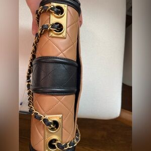 Authentic Chanel Lambskin Quilted Medium Elegant CC Flap Brown Black
