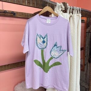 Patchwork tee sewn by me, using vintage quilts & fabric on a new comfort wash tee shirt. Unisex size XL