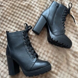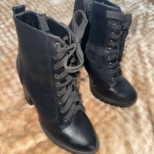 Step out in style with these chic black lace-up ankle boots. Perfect for any occasion, they offer both comfort and elegance.