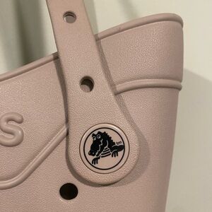 Stylish and versatile, this taupe tote bag from Crocs is perfect for everyday use. Its unique design and durable material make it a must-have accessory.
