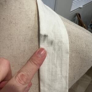 NWT, has stains from warehouse incident on halter, and sides of item that should remove in first wash if pretreated. We have found a mixing a little dawn dish soap and borax into a paste and then rubbing the paste into the stain gets almost everything out. Please see photos.