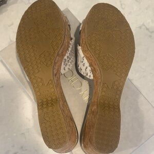 Elegant mules with a silver and gold snakeskin pattern. Perfect for stylish outings. In great condition! Dust bag is still in box with the sandals.