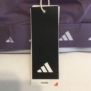 Pretty violet Adidas racerback workout bra with mesh ventilation/anti-chafe finish.