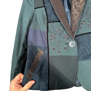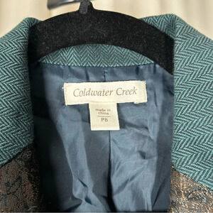 Coldwater Creek Size Petite 8 Patchwork Blazer Jacket Teal Boho Lagenlook Artsy