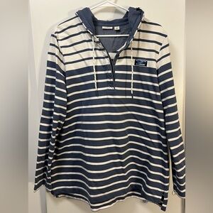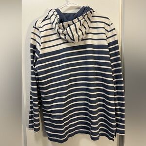 Stylish L.L. Bean top with navy and cream stripes. Perfect for casual wear. Hooded, regular fit, %100 cotton
