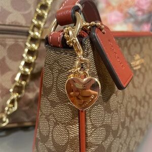 Chic gold heart charm by Coach. Ideal for keys or bags. Mini size.