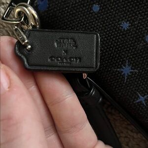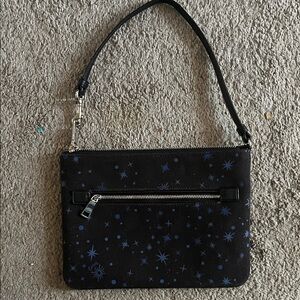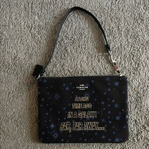 Star Wars Coach limited edition large clutch/handbag with blue star pattern. Features yellow text: 'A long time ago in a galaxy far, far away.'