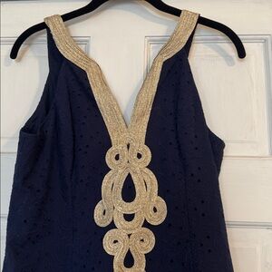 Lilly Pulitzer Navy Dress with Gold Detailing