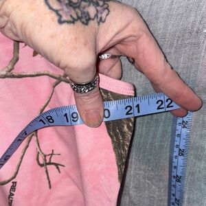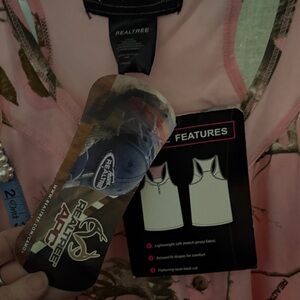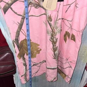 Pink tank top with Realtree camo pattern. Features nature-inspired design.